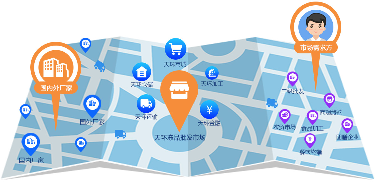 天環(huán)商城是依托于線下實(shí)體批發(fā)市場而搭建的一個(gè)專注在冷凍食品供應(yīng)鏈的B2B電商平臺。